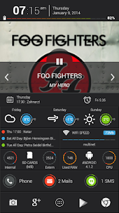 The Notification Widget shows you your missed Phone Calls, unread Mails and unread Messages with a stylish progress bar.